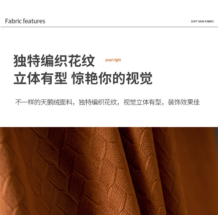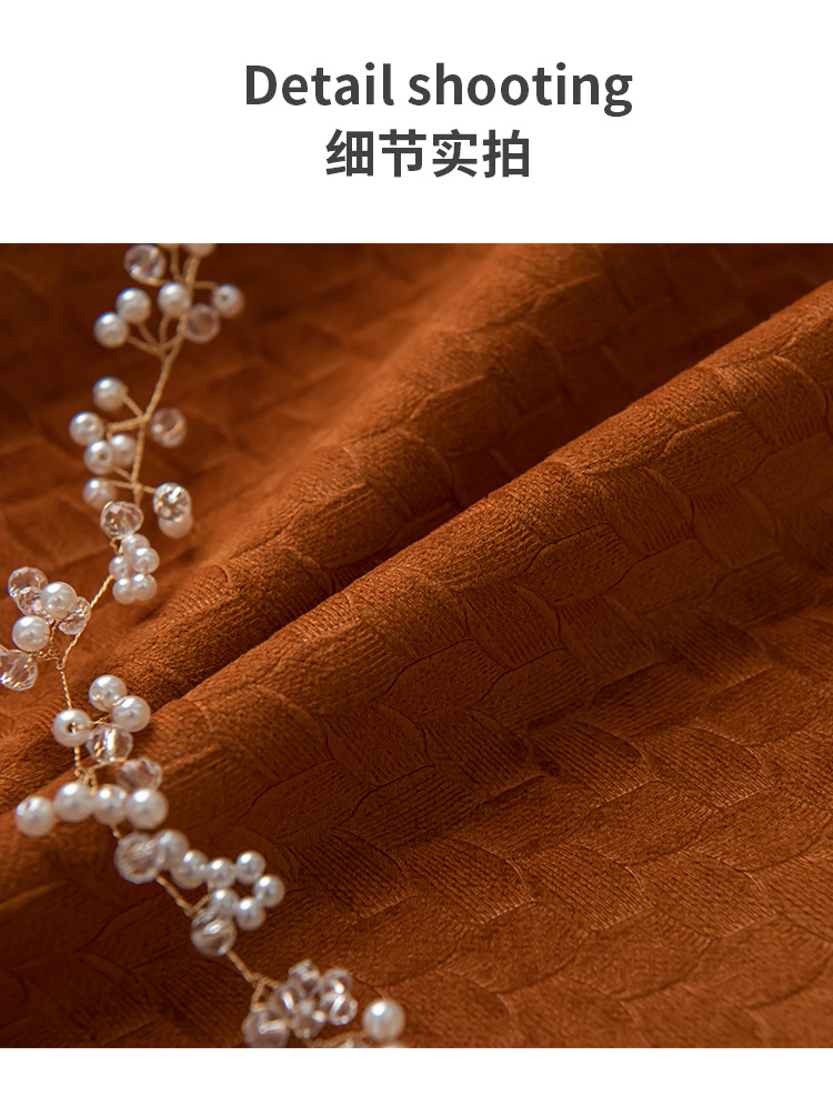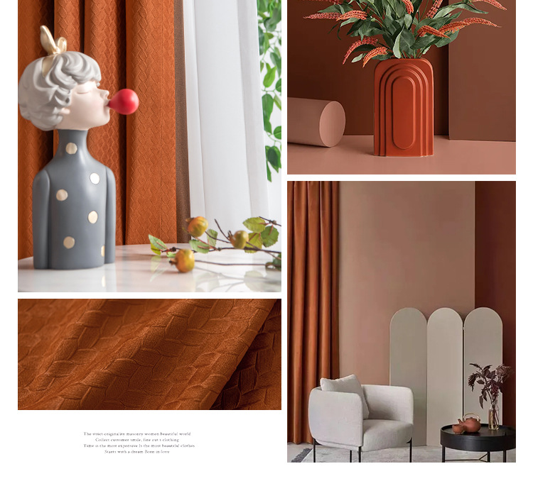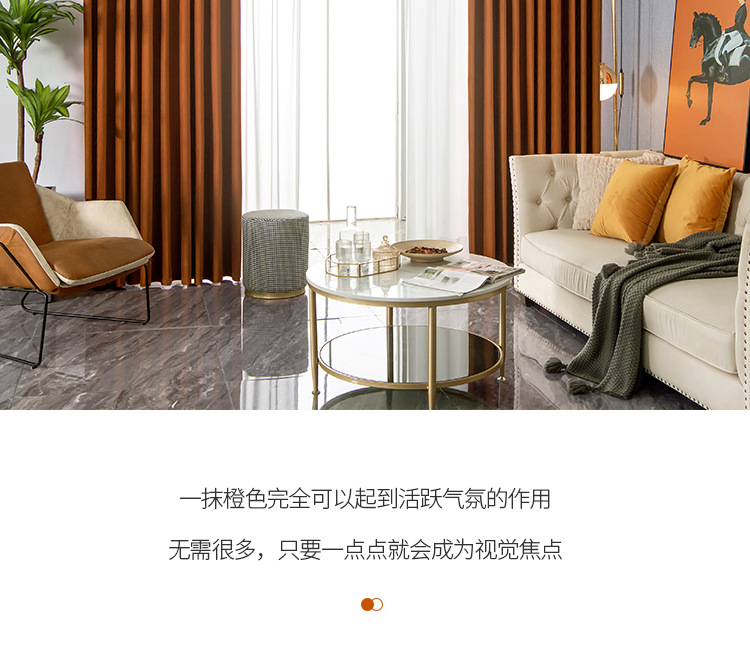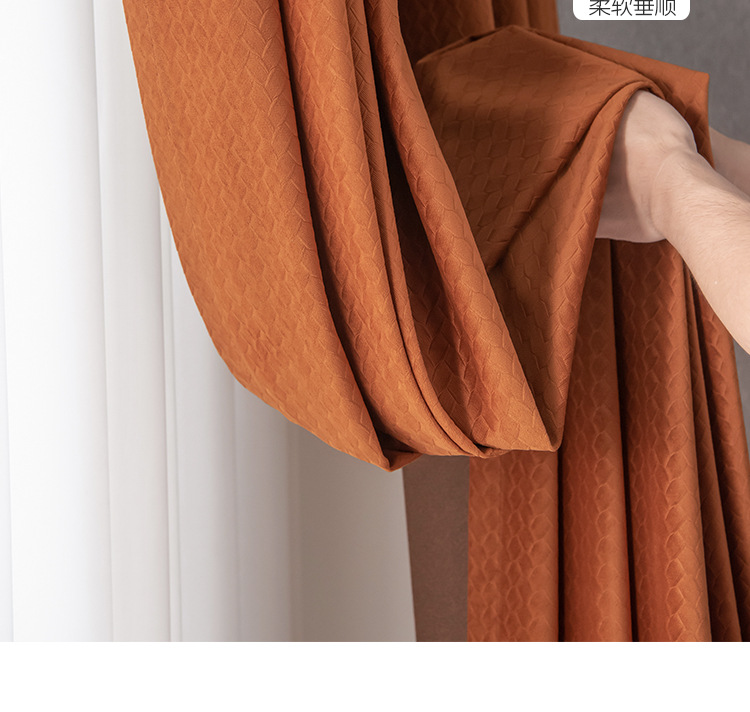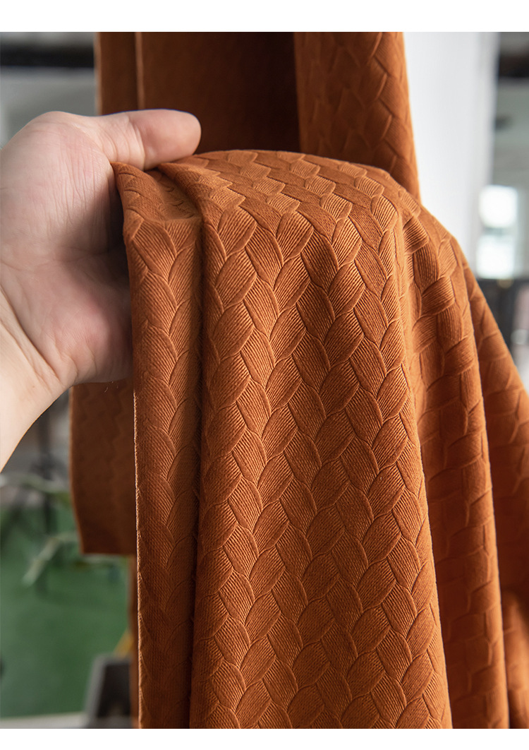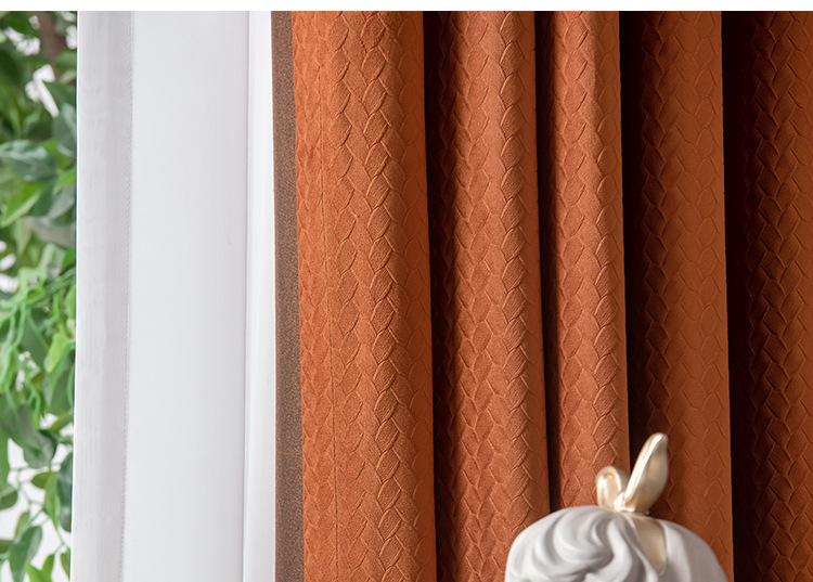北歐輕奢窗簾臥室遮光簡約現代客廳隔熱南瓜色天鵝絨布絲絨落地窗